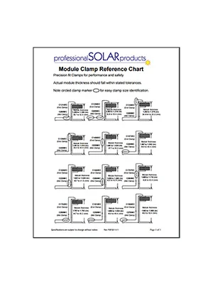 Installing a new module and unsure about which ProSolar Mid/End Clamp to use? We've made the process simple for you. Just take a look at our easy-to-use Module Clamp Reference Chart and match up your module height to the corresponding end and mid clamp.